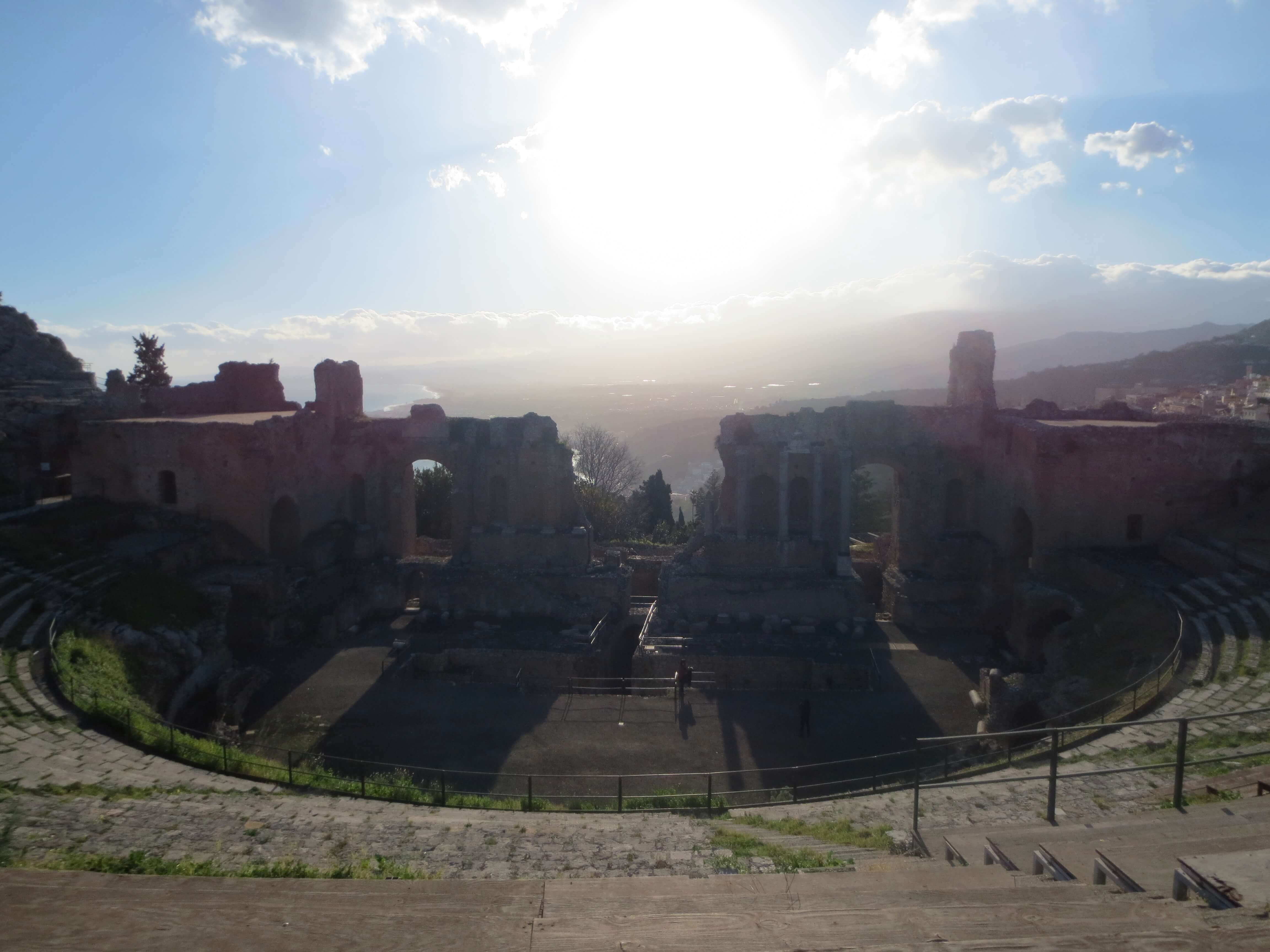 What makes the theatre special is its location. Built on the edge of a cliff, it offers a spectacular view of Mount Etna and the sea.