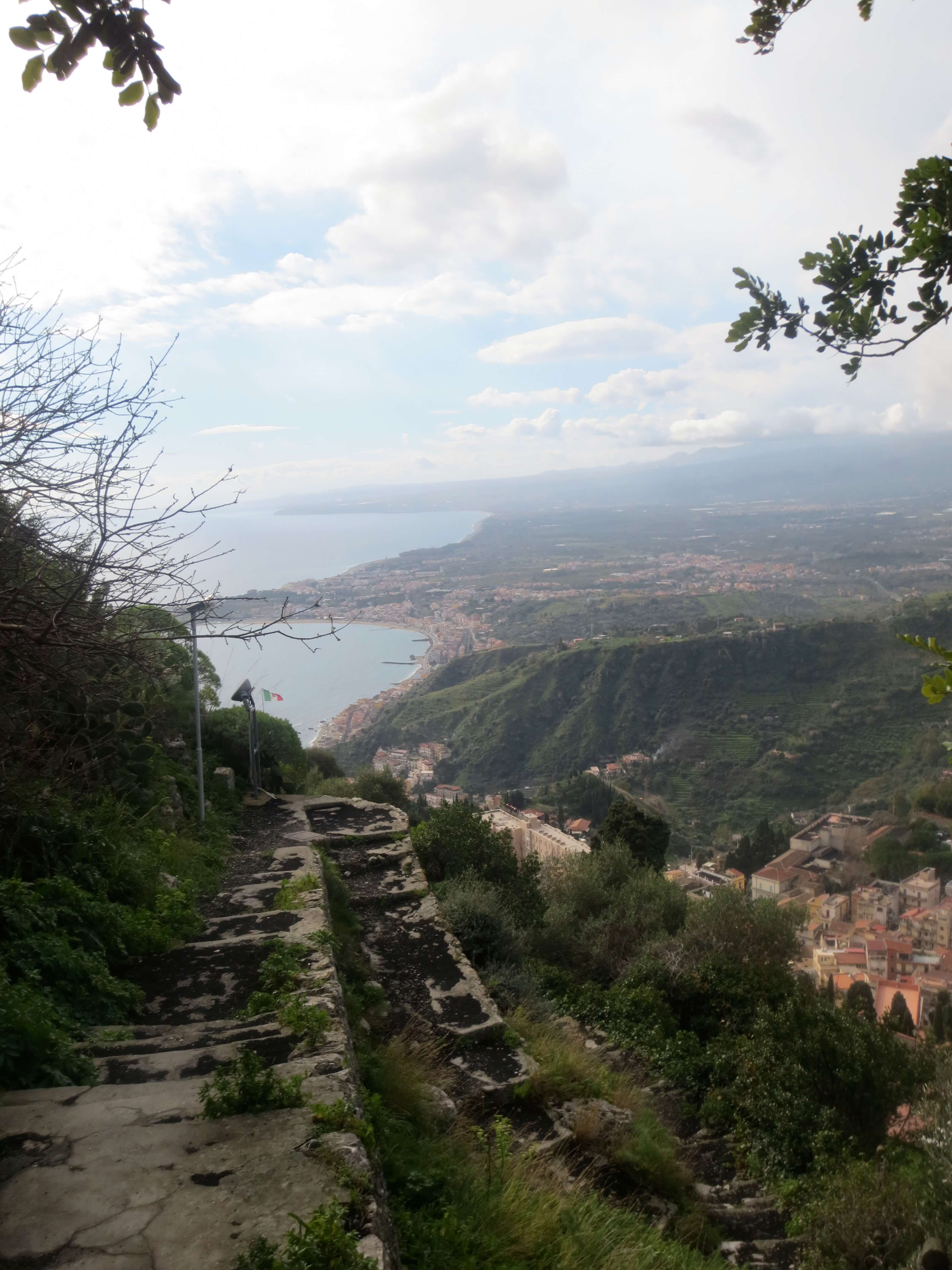 View down from the steps leading to Norman Castle, in Castelmola.According to legend, Castelmola was promised the status of an independent city on one condition. Its population had to exceed 1,000 inhabitants.
